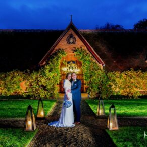 In the gallery above you’ll see many pictures I’ve taken at various Buckinghamshire and Home Counties hotels. It looks like the venue is beautifully floodlit, and most couples say that’s gorgeous and think nothing of it. That’s until I show them two pictures of what it really looked like before with the backdrop or building shrouded in complete darkness, and then after my lighting tricks!