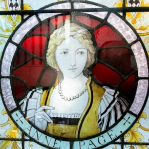 Shakespeare makes the Garter Inn one of the settings for a play, with the Host of the Garter one of his characters. On the inside staircase a Victorian stained glass window showcases pictures of Falstaff and other characters from the Merry Wives.