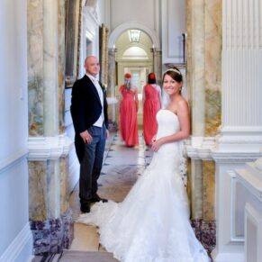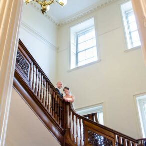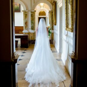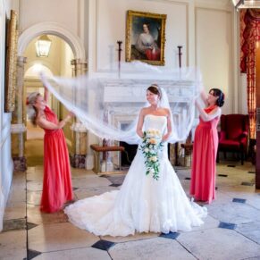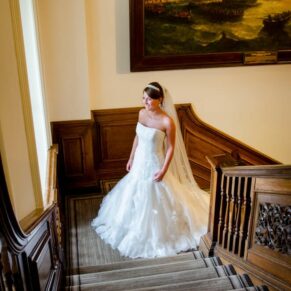 My favourite place at Wokefield Estate for wedding photography is the grand entrance hallway and staircase. The high ceilings, chandeliers and fabulous paintings take you into another era. The light streams through the big windows into this magical part of the property. As a result, it is an absolute must location for some dramatically lit classic wedding poses.